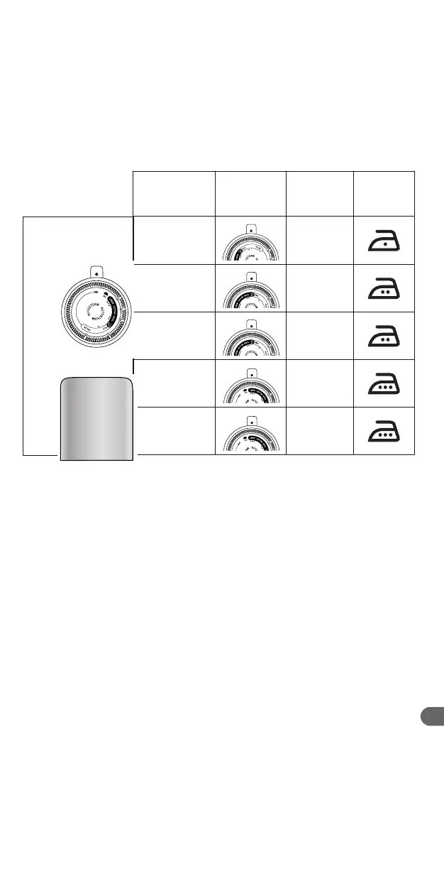 quantidade de vapor e a temperatura ao tecido seleccionado. Para obter vapor,