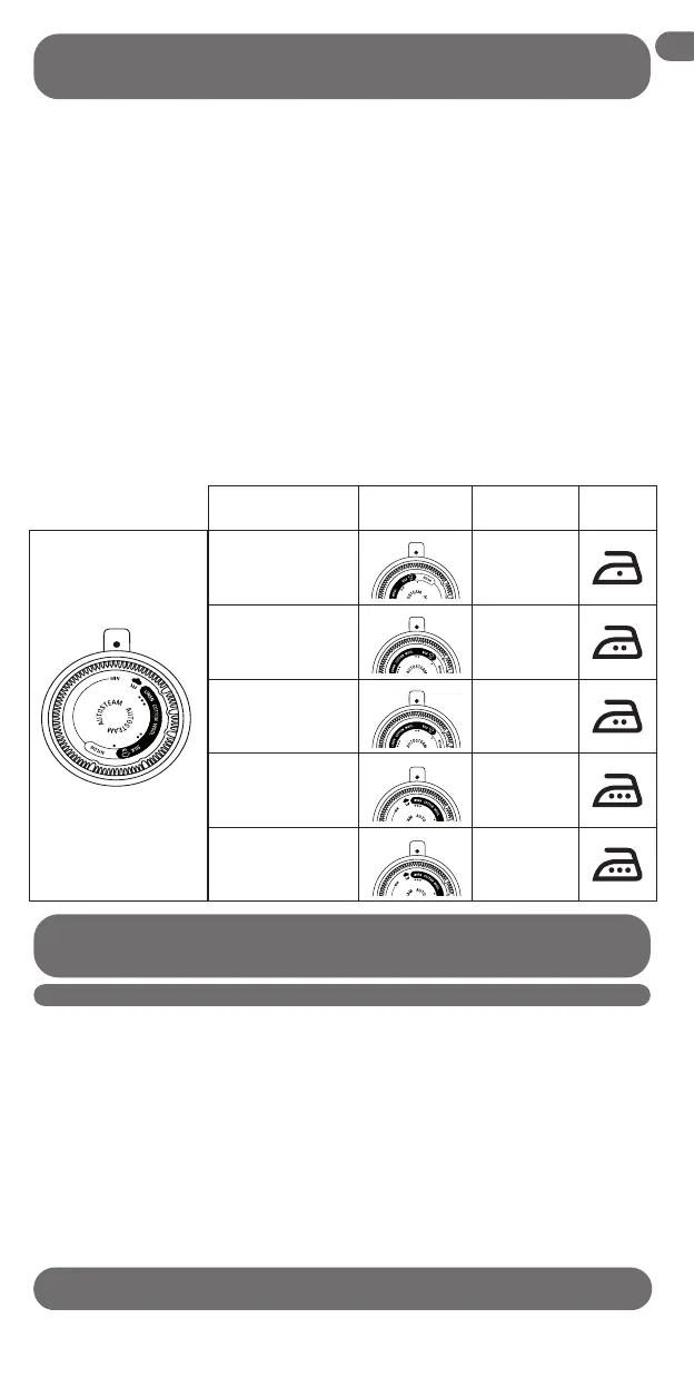elect the fabric to be ironed on the thermostat dial. For perfect results, an optimum