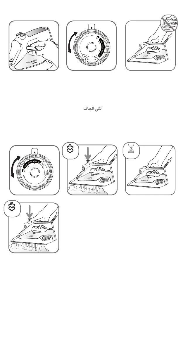 roning • IT Stirare senza vapore • ES Planchado sin vapor • PT Engomar SEM