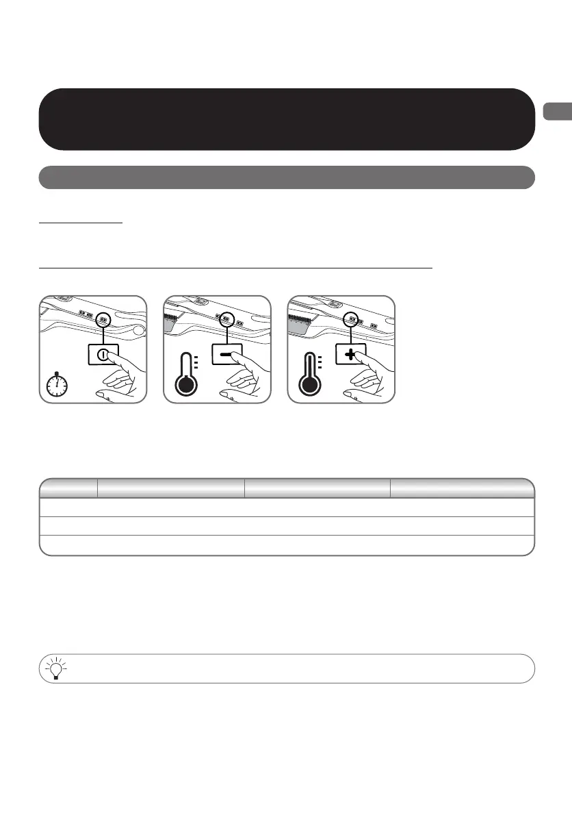 2) Selezionare la temperatura ottimale per i capelli trattati, servendosi dei pulsanti + e –: