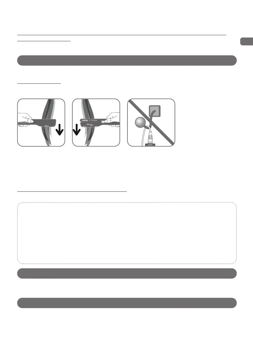 • Der Haarglätter muss in der durch die Pfeile angezeigten Richtung (der Kamm muss stets nach unten gerichtet sein)