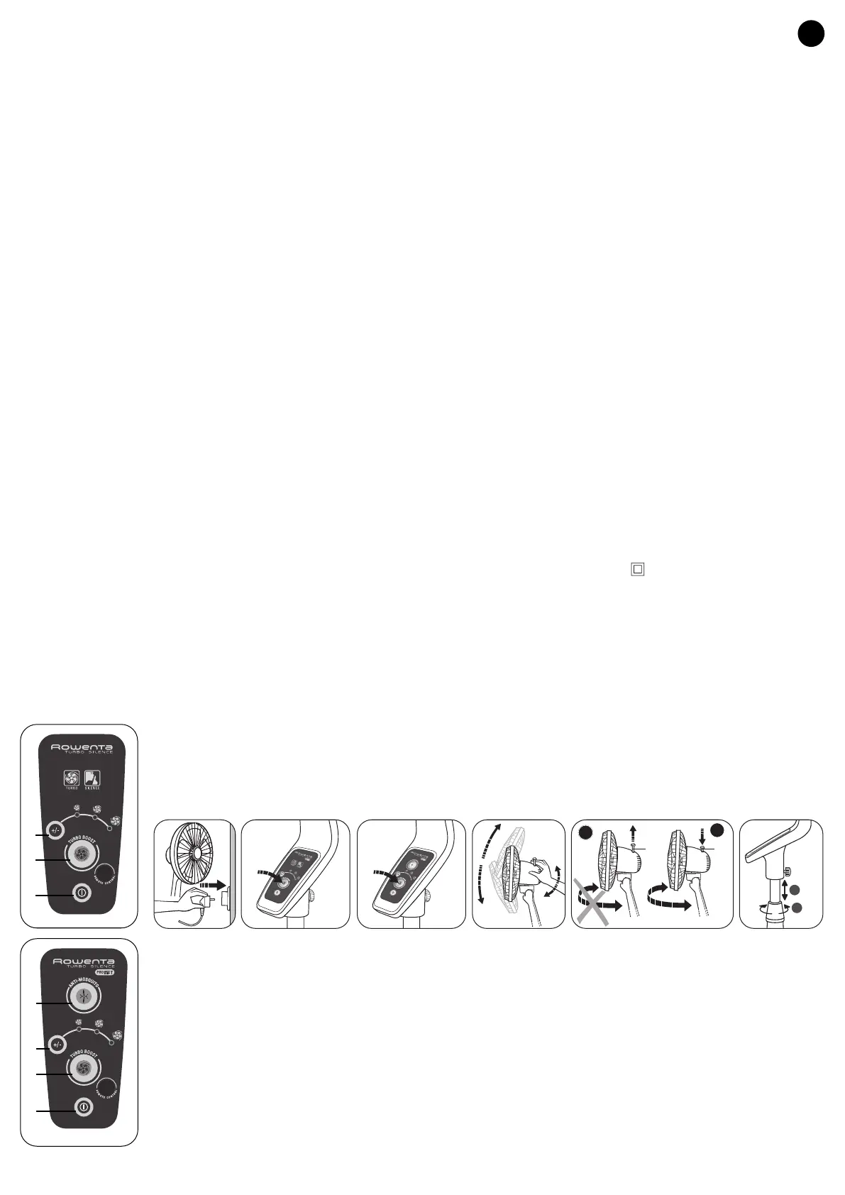: Probeer niet knop (E) omhoog te trekken terwijl de ventilator is ingeschakeld, daar het zwenkmechanisme hierdoor beschadigd kan worden.