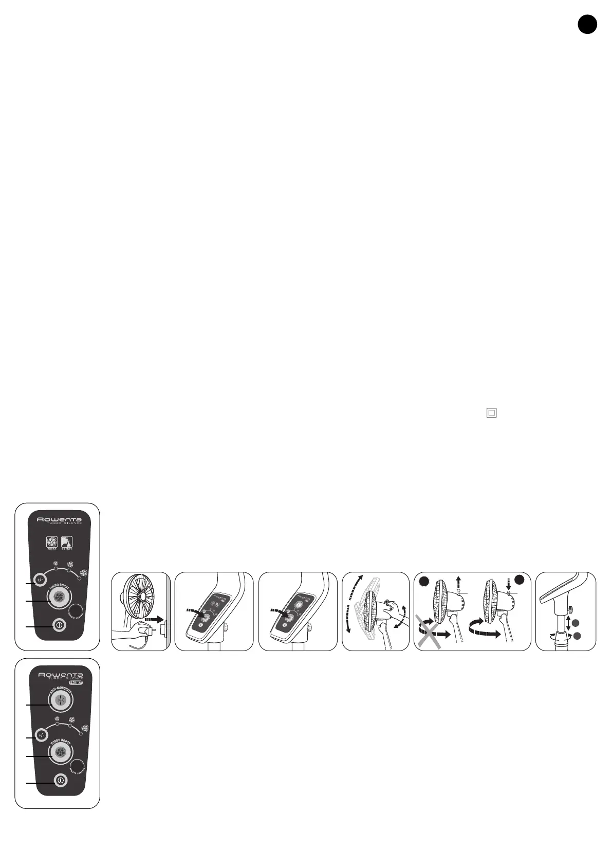 ATENCIÓN : No intente accionar el botón (E) cuando el aparato está funcionando para no dañar el mecanismo de oscilación.