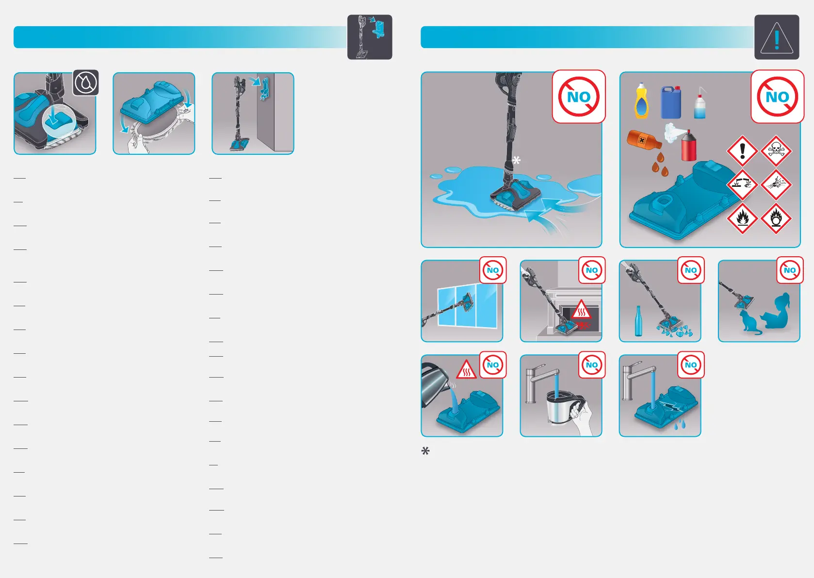 FR Ne pas aspirer d’eau. / IT Non aspirare liquidi. / EN Do not vacuum any water. / DE Kein Wasser aufsaugen. /