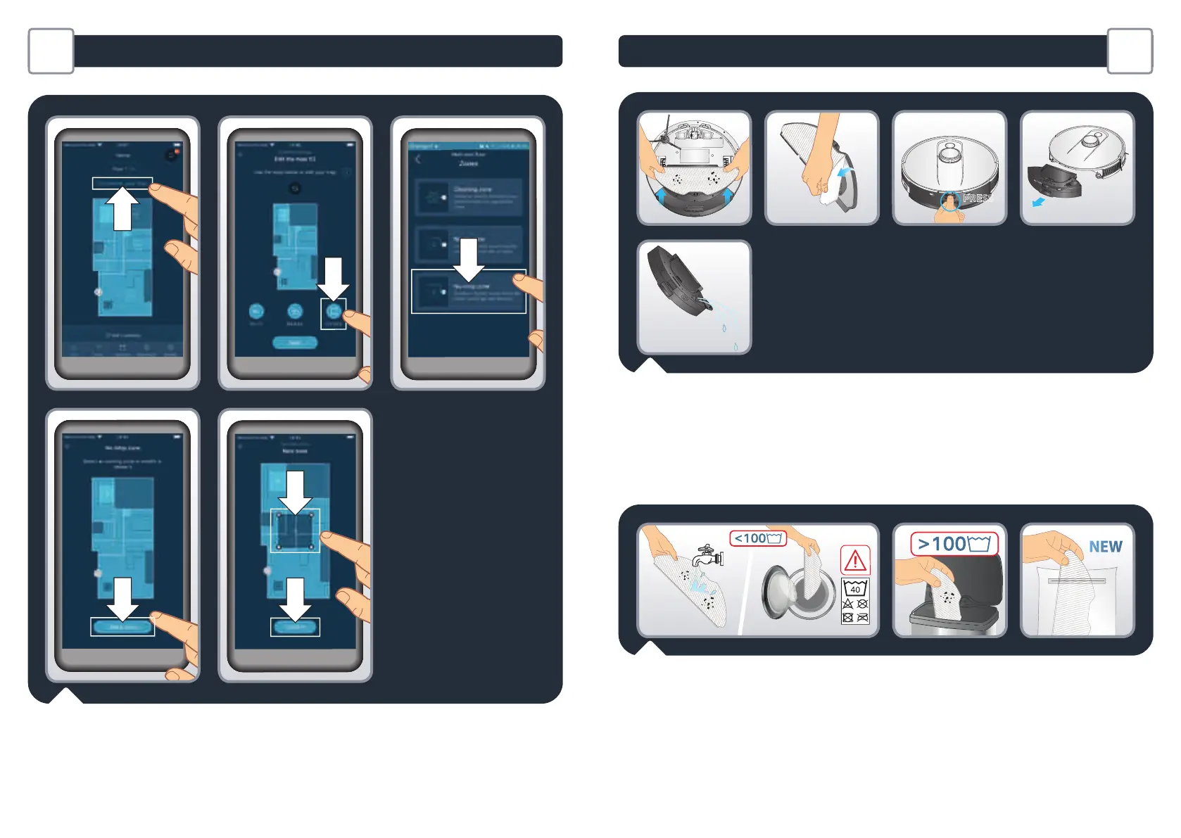 der Wassertank eingesetzt ist, darf der Roboter diese Bereiche nicht reinigen.