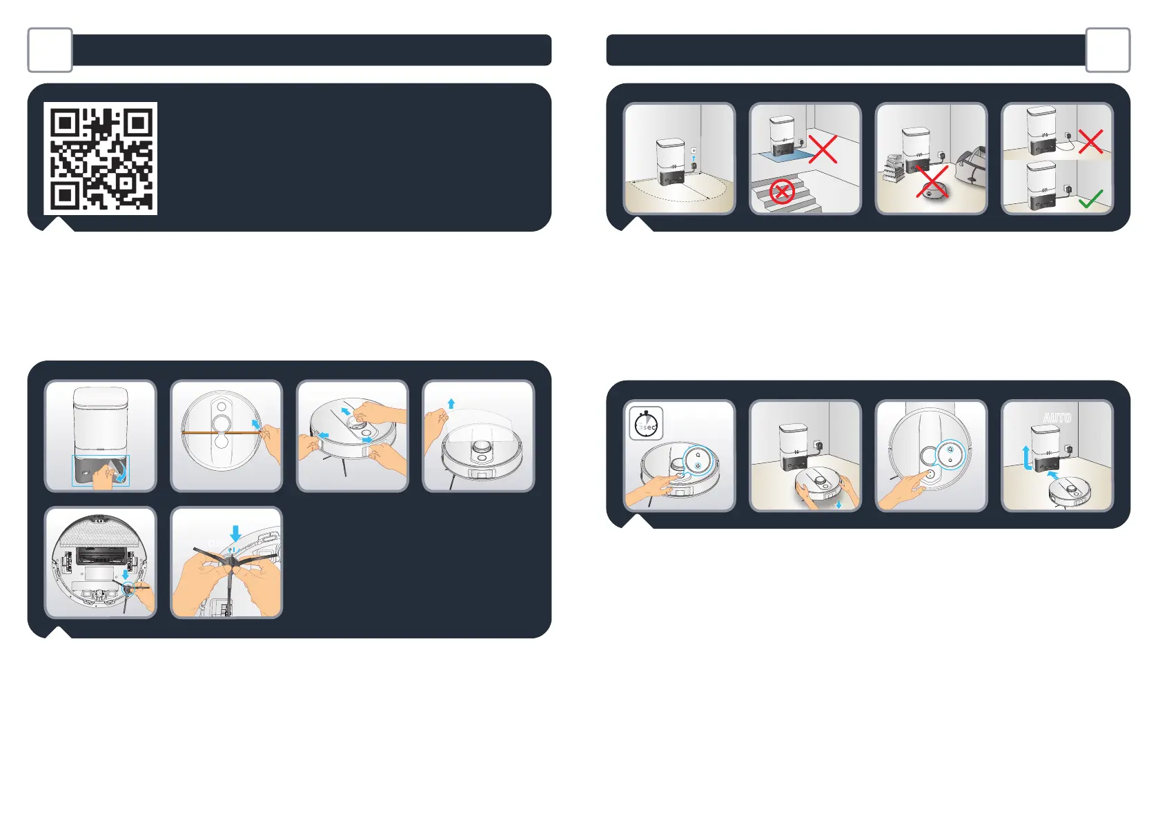 the robot will automatically dock to the station. (Do not manually place the robot against