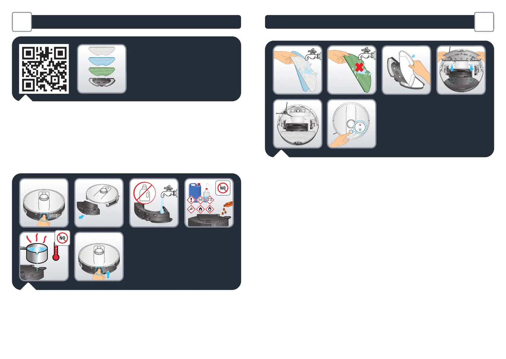 it.Attachthemoptothemoppad.Takethemoppadandclipitbelow the robot. Press