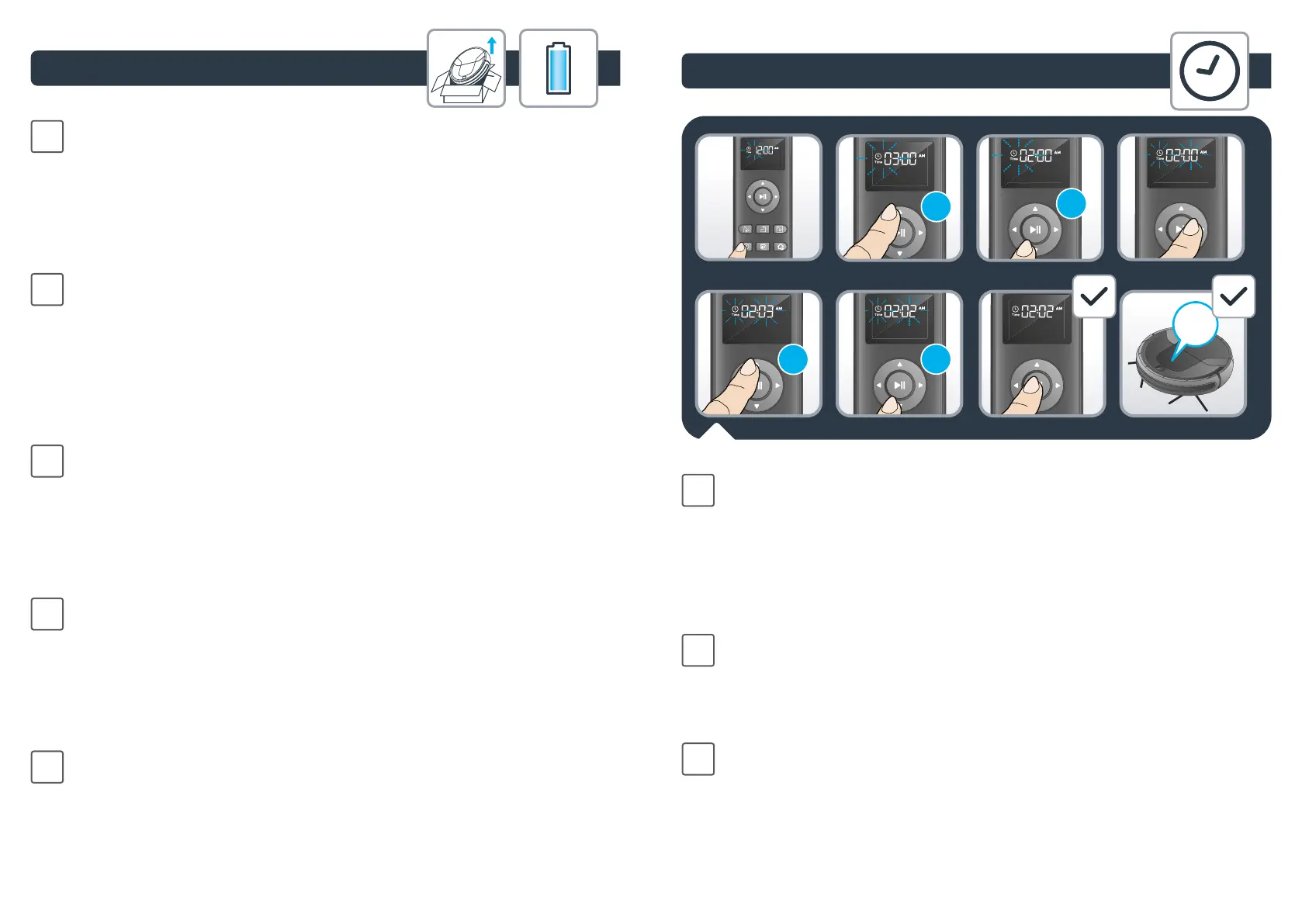 Pour régler l’heure de la journée pour votre robot, appuyez sur le bouton “horloge” (clock)