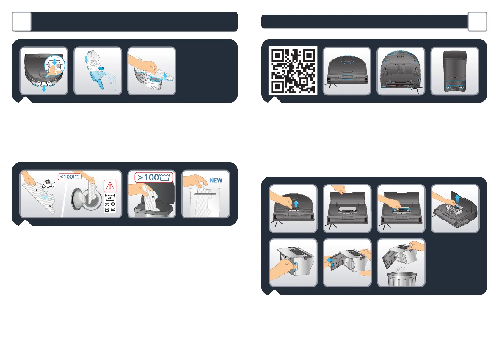 Flashez le code QR ci-dessus pour découvrir comment entretenir le robot an qu’il conserve ses