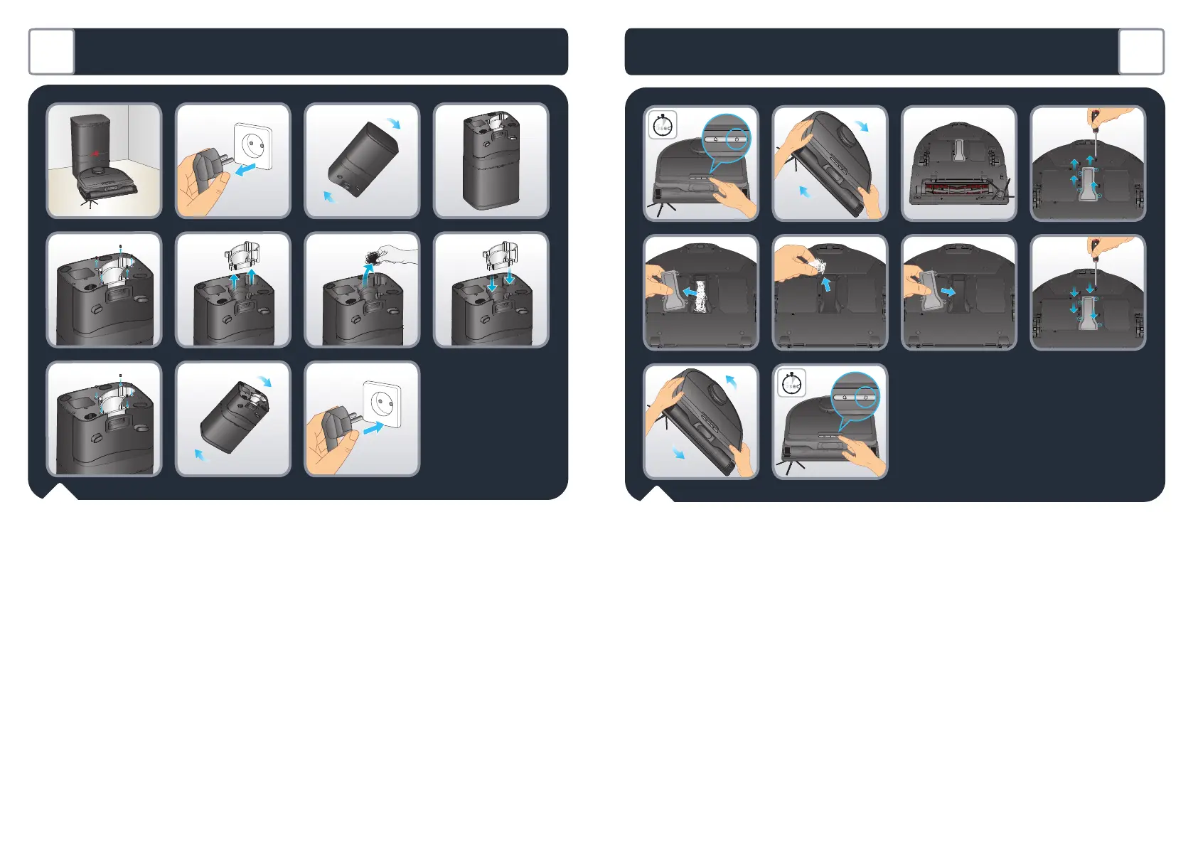 vis. Retournez la station et rebranchez la che d’alimentation. Placez le robot devant la