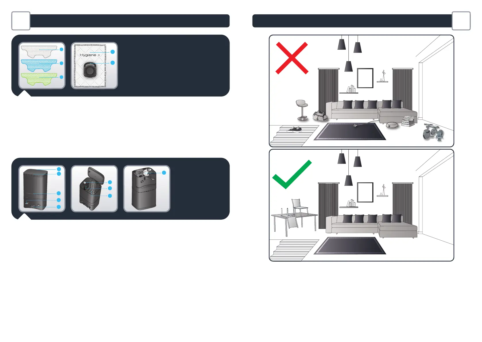 any item (ex: shoe) from the stairs. When using the robot in a raised area,