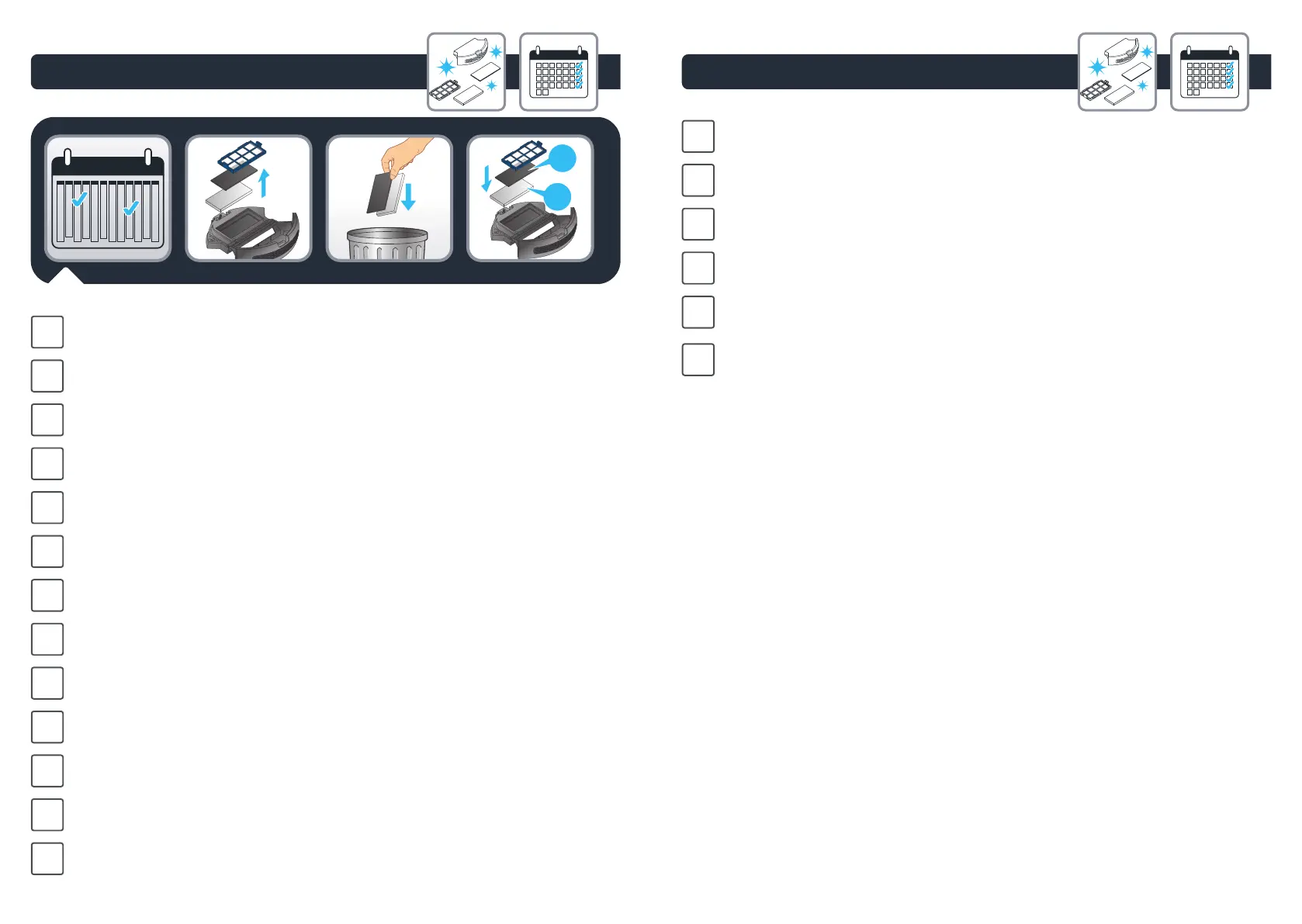 Every 6 months replace the ne dust and foam lter with new ones to maintain optimal