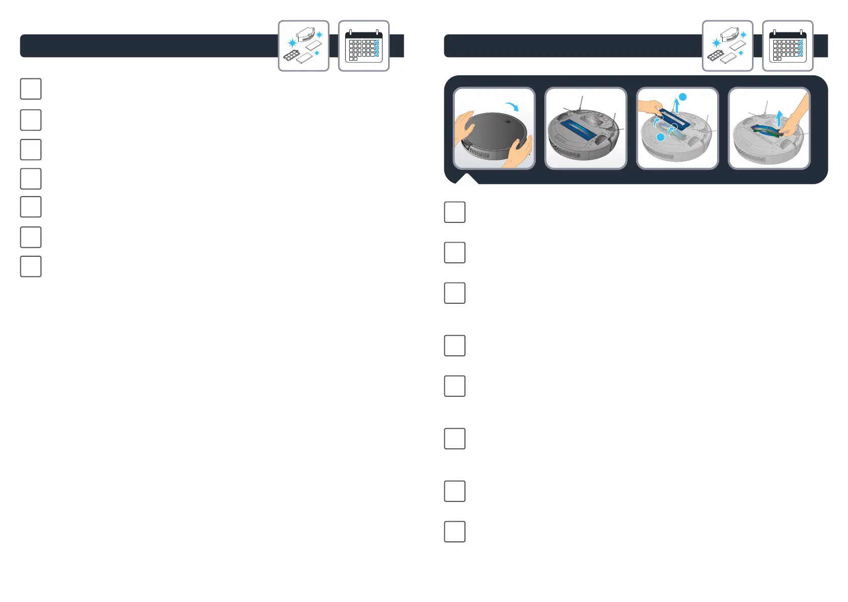 Clean the brush of the robot once a week. To do that turn the robot upside down.
