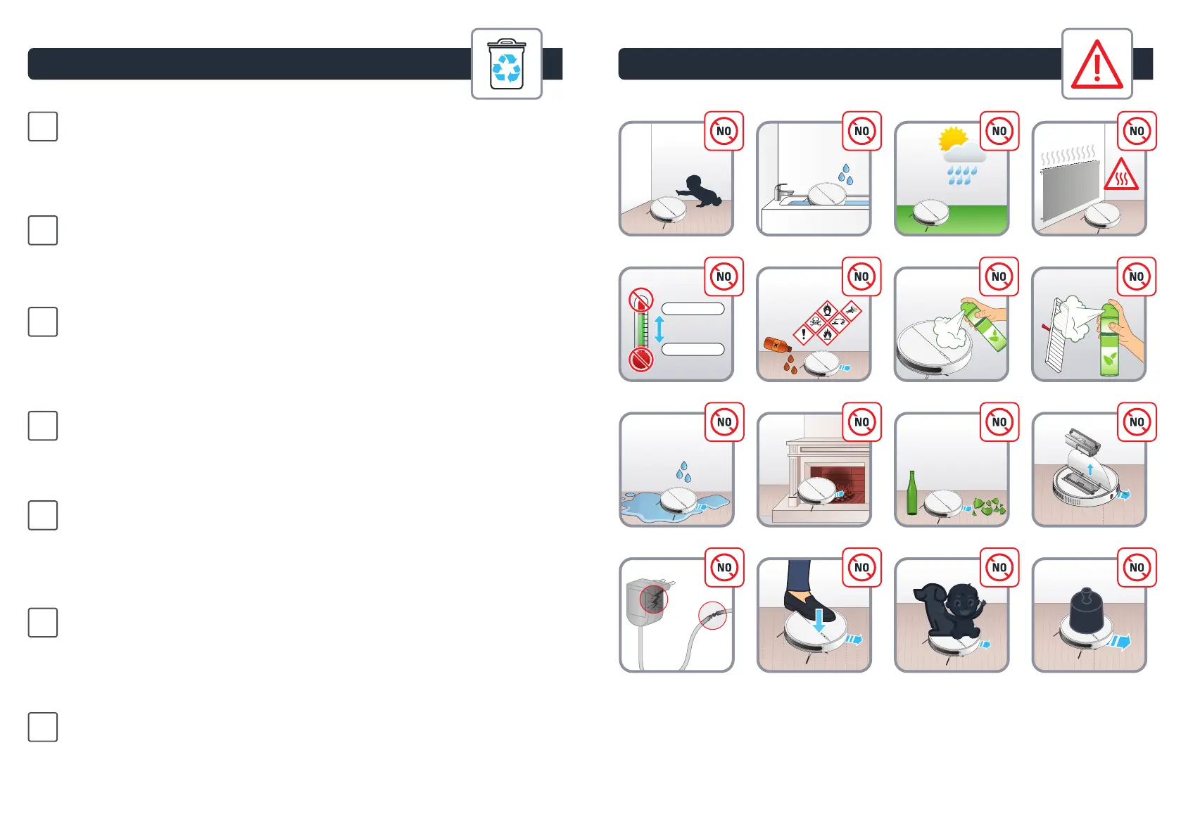 da odprete zgornji pokrov. Odklopite baterijo iz robota. Baterijo in robota reciklirajte.