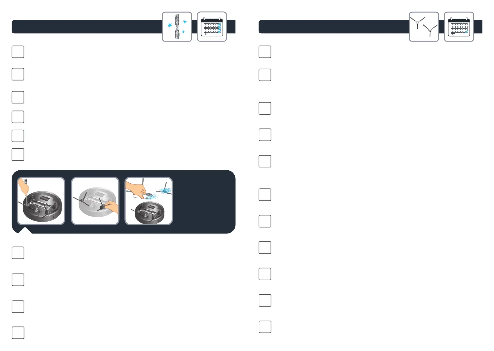 bočnú kefu a zamotané predmety v štrbine bočnej kefy. Bočné kefy čistite raz za mesiac.