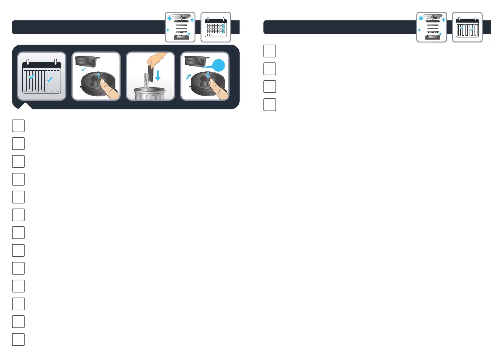 Tous les 6 mois, remplacez le filtre plissé et la mousse par des filtres neufs afin de garantir des