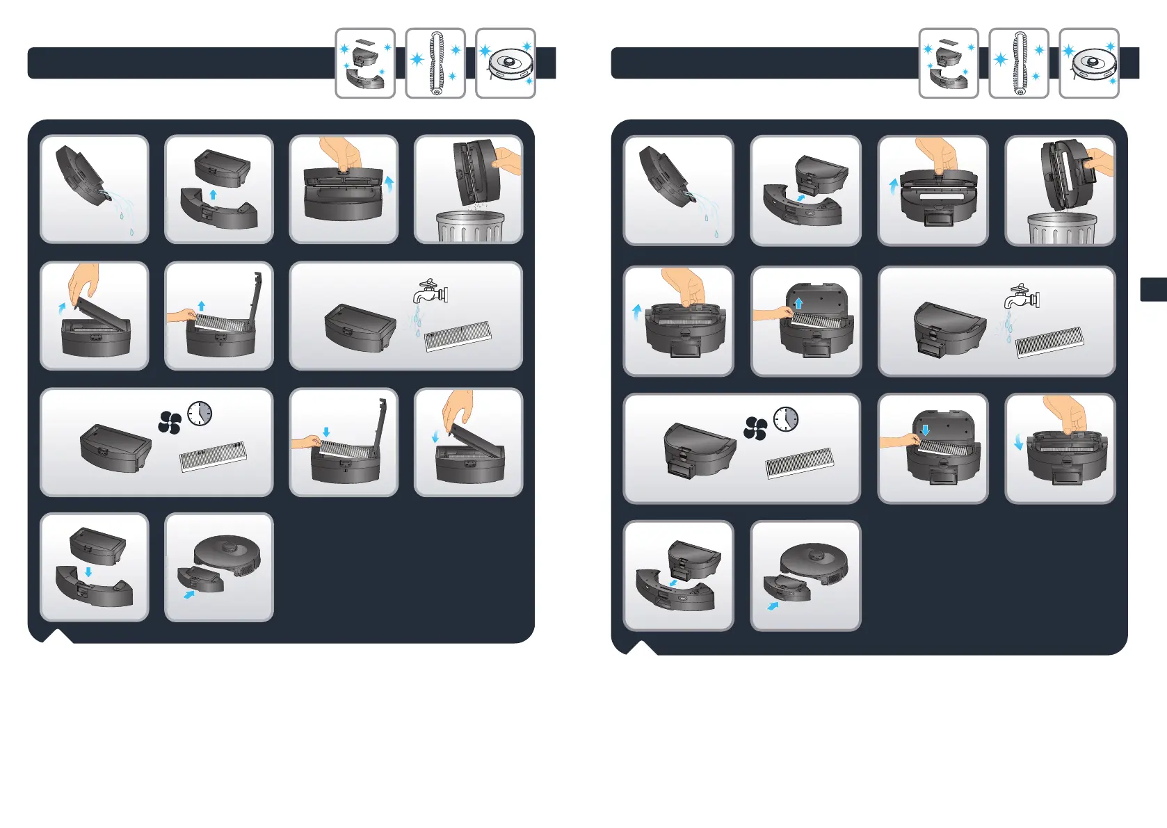 waterreservoir en plaats vervolgens de 2-in-1-stofbak en het waterreservoir terug in de robot.