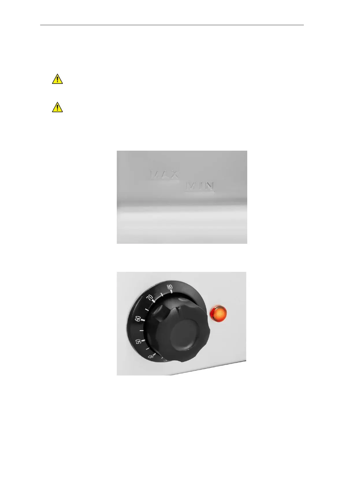 temperatuurregelknop. Het verwarmingsregellampje gaat branden.