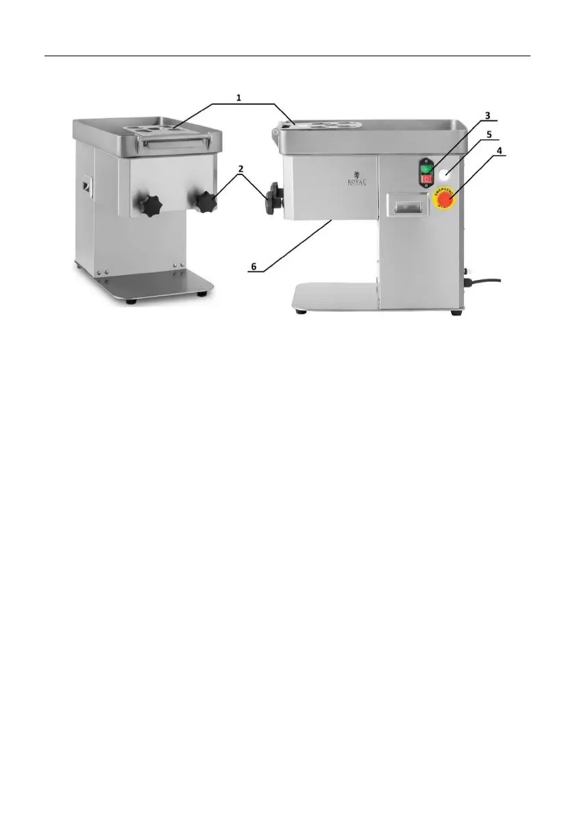 1 – Öffnungen mit der Schutzabdeckung zur Fleischzuführung