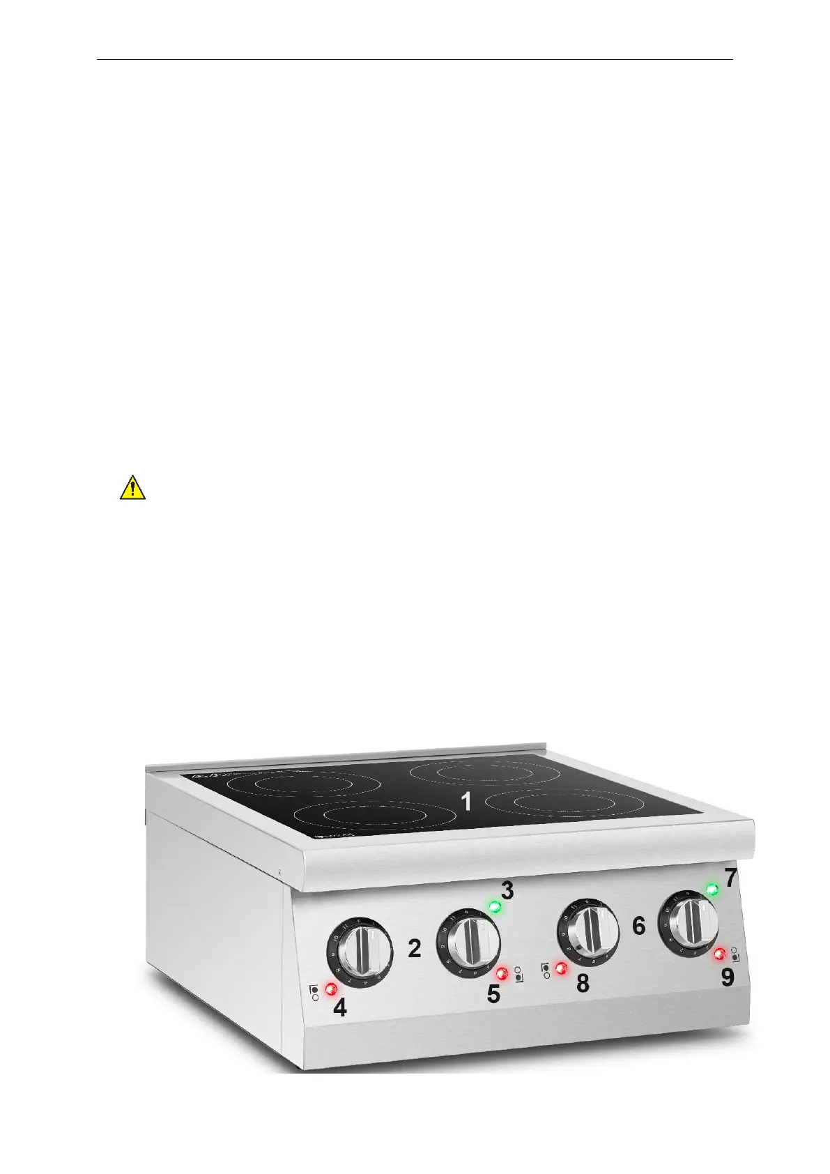 t) ACHTUNG! Das Kochfeld des Geräts bleibt auch nach dem Ausschalten noch lange heiß. Bei Berührung