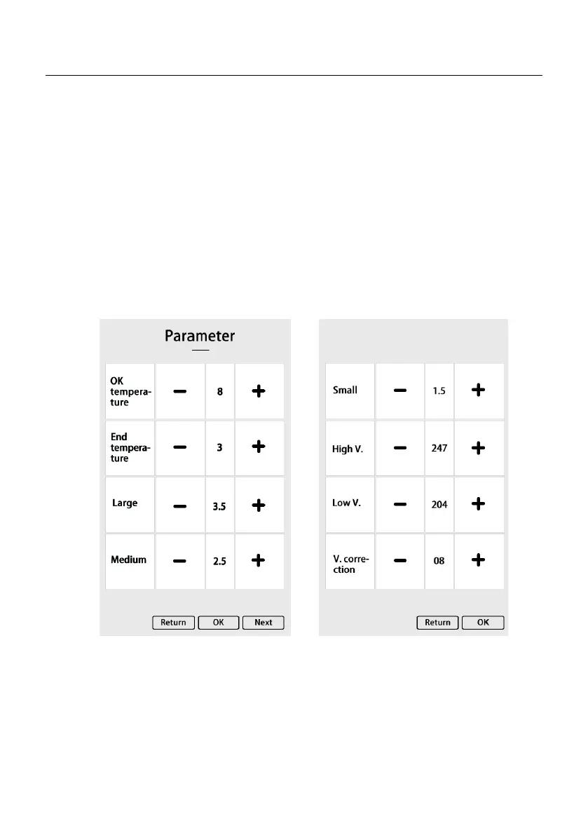• "OK hőmérséklet" - a gép milyen hőmérsékleti értéken kezdheti el a