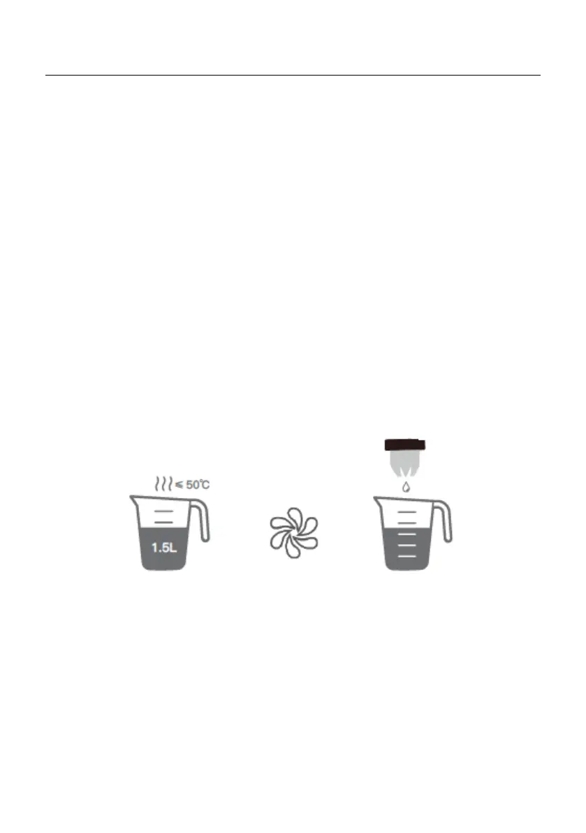 • Öntsön 1,5 liter meleg vizet a krémtartályba (a víz hőmérséklete nem