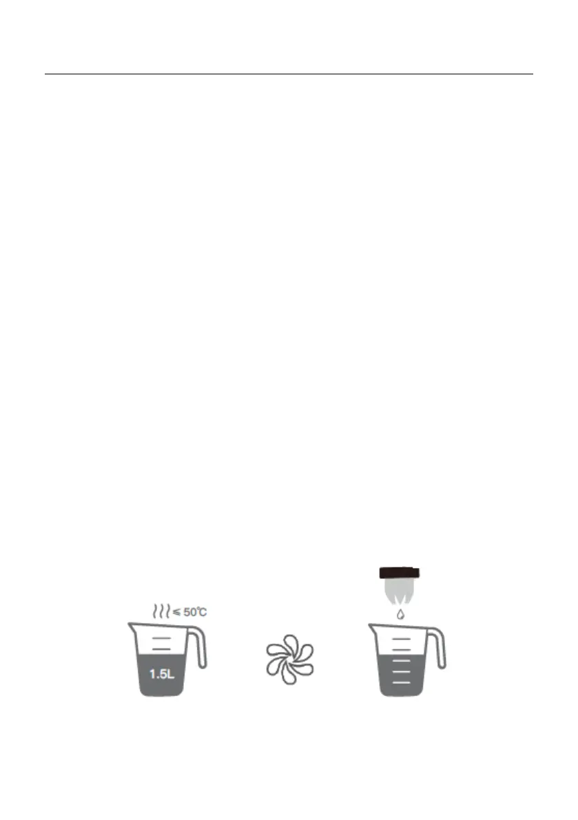 • Versez 1,5 L d'eau tiède dans le récipient à crème (la température de
