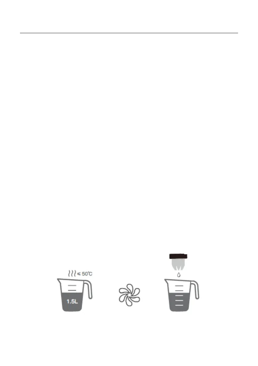 • Versare 1,5 l di acqua calda nel contenitore della panna (la temperatura