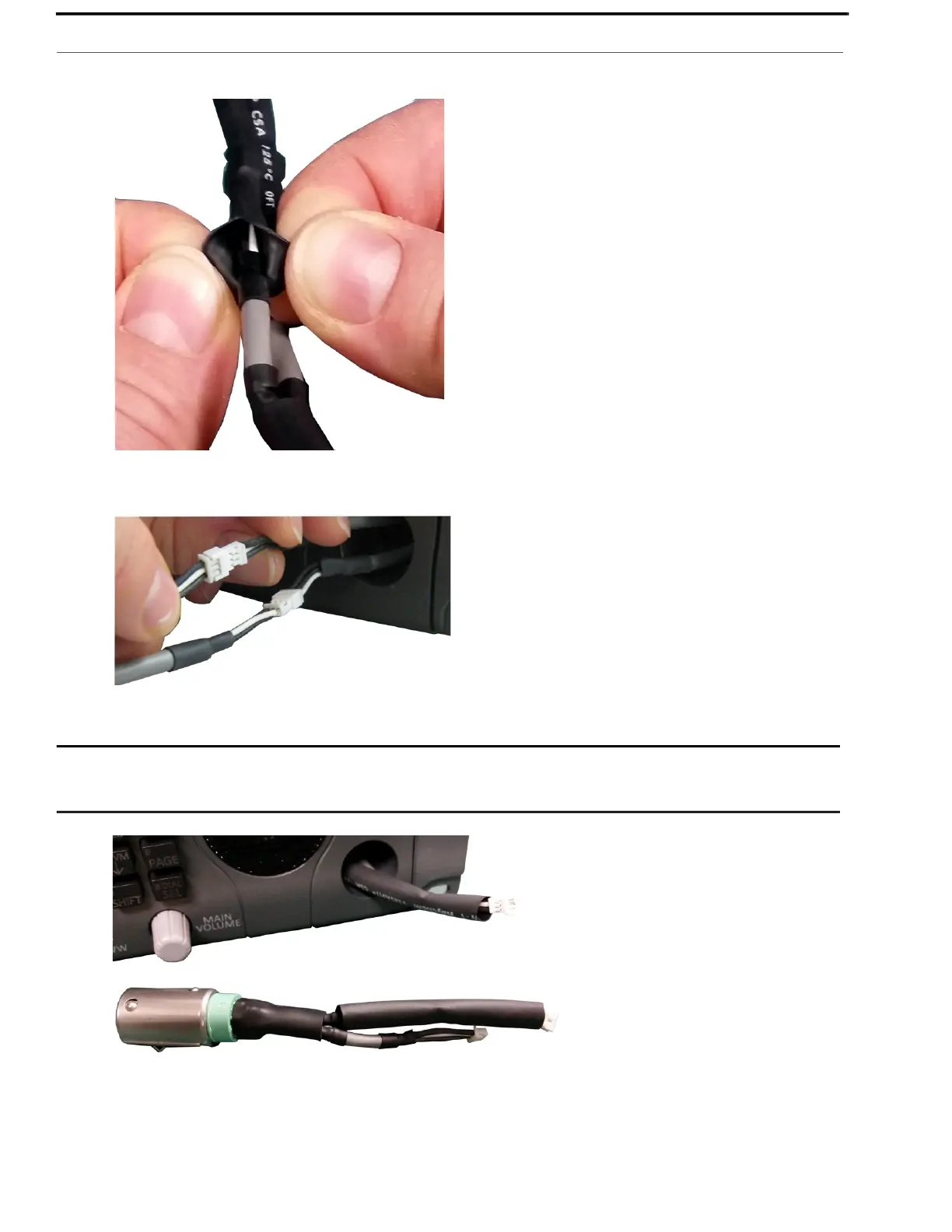 Using the second piece of shrink tubing, thread the long cable protruding from the keypanel headset