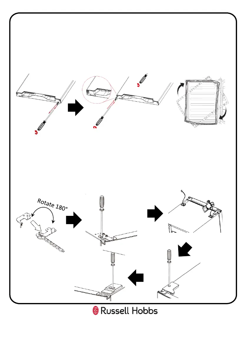 ensuring it is fixed securely. Remove the door seal, and rotate 180°, and refit