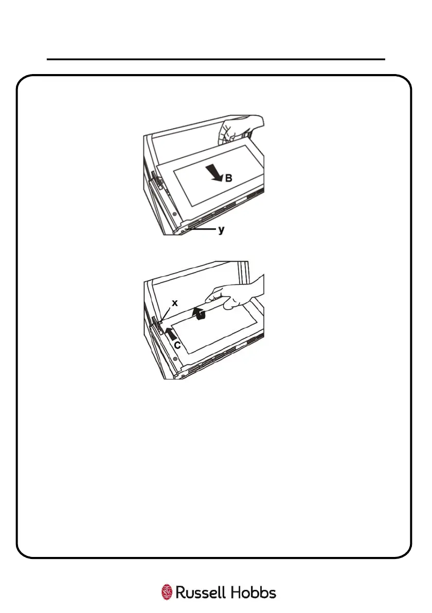 1. Push the glass towards and under the location bracket (y), in the direction of
