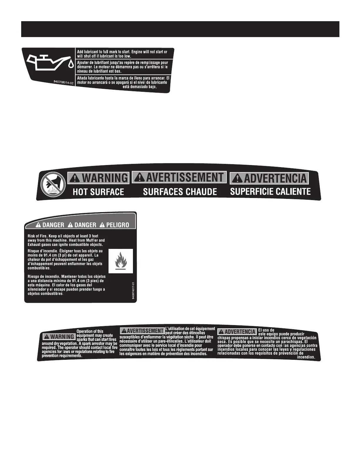 Do not touch the muffler or aluminum cylinder of the engine. They are very HOT and will cause severe burns. Don’t put any