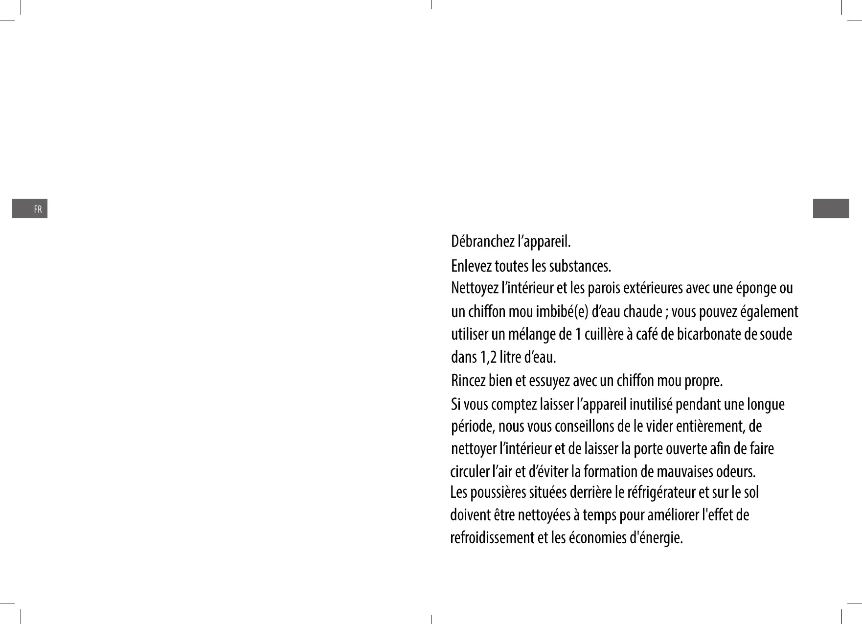 • Aliments cuits, plats froids, etc. : Ils doivent être recouverts et
