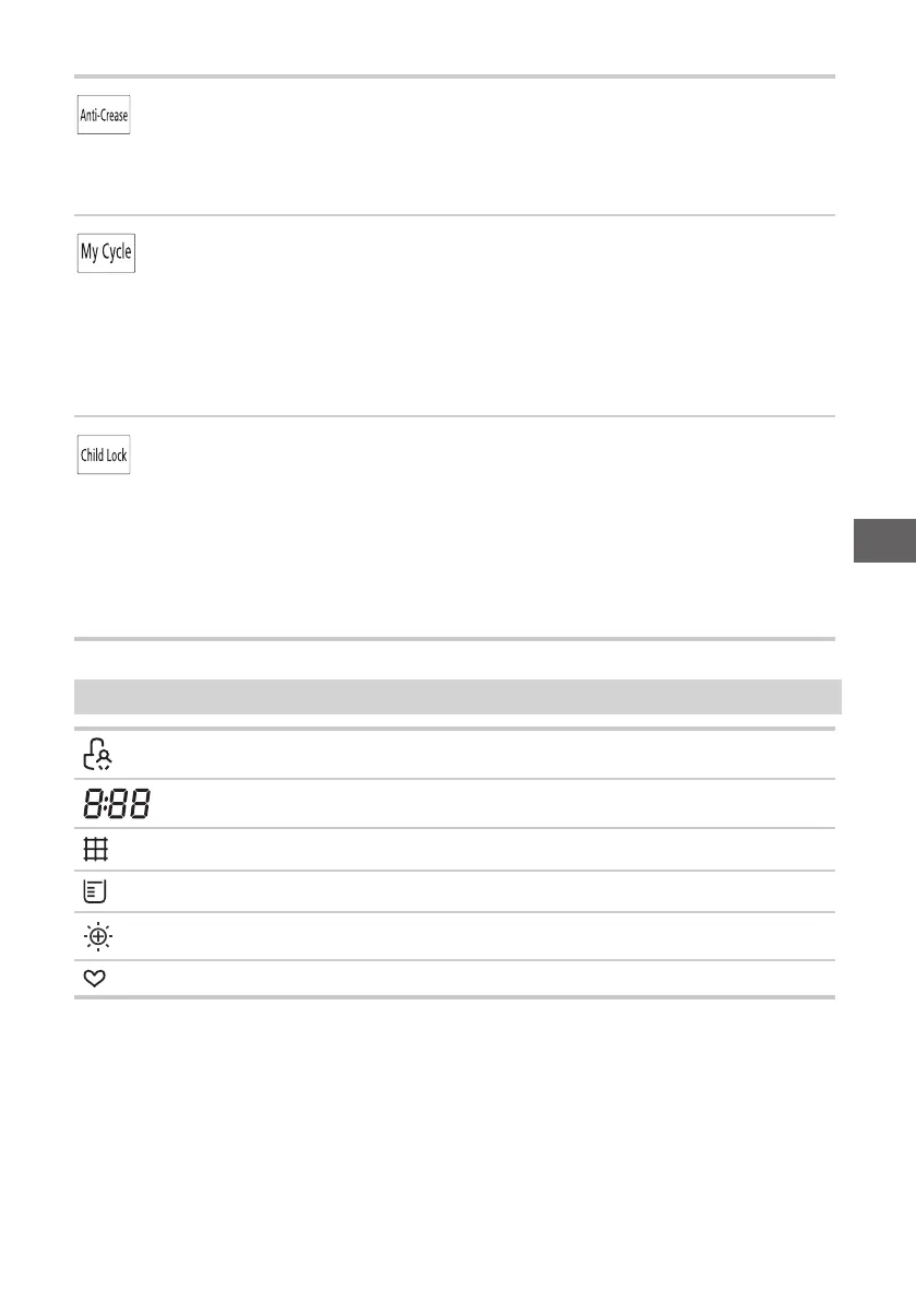 minutes (selected). This function prevents the laundry from creases. The laundry can