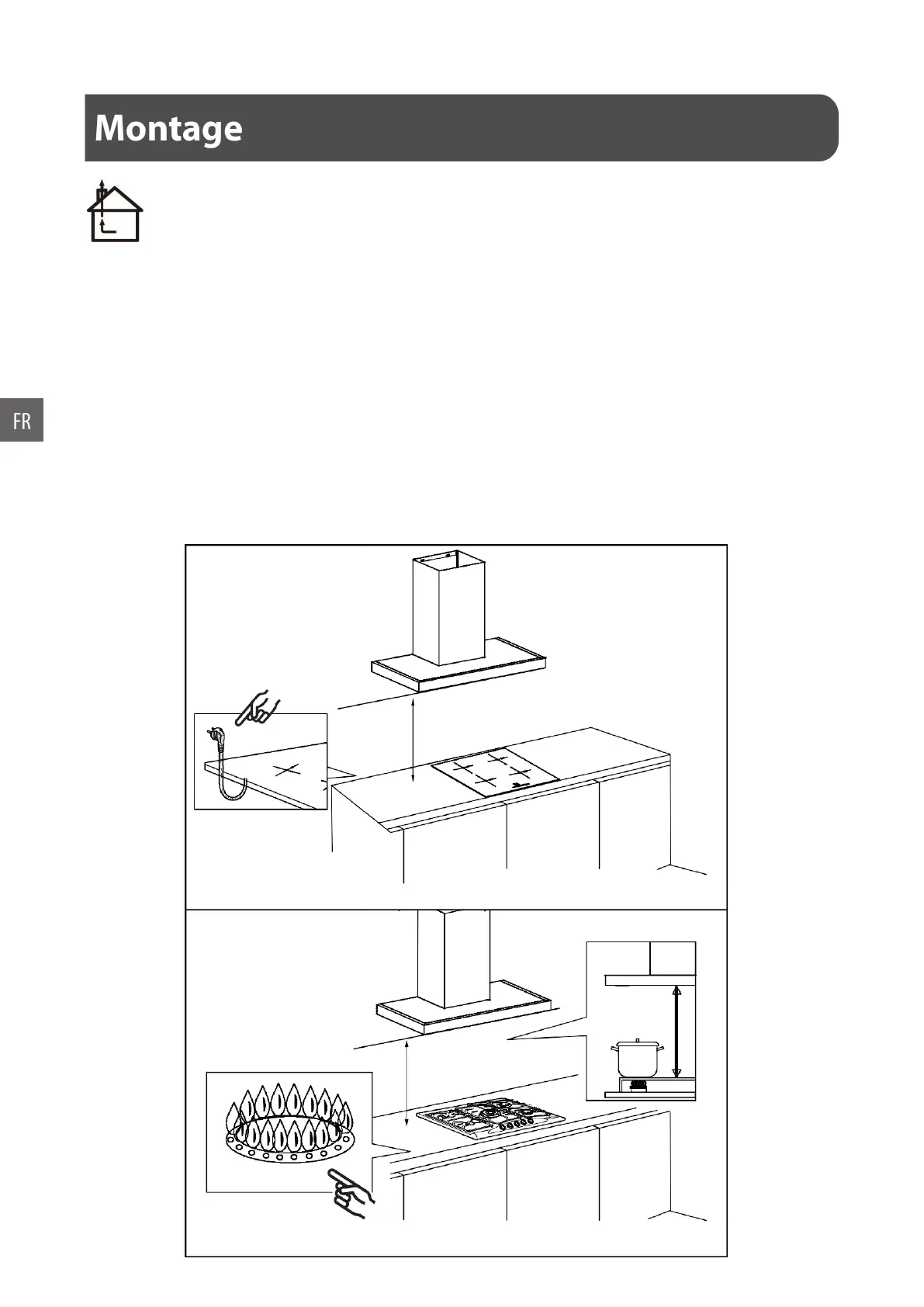 Hauteur requise au-dessus du plaque de cuisson électrique : 650 mm.