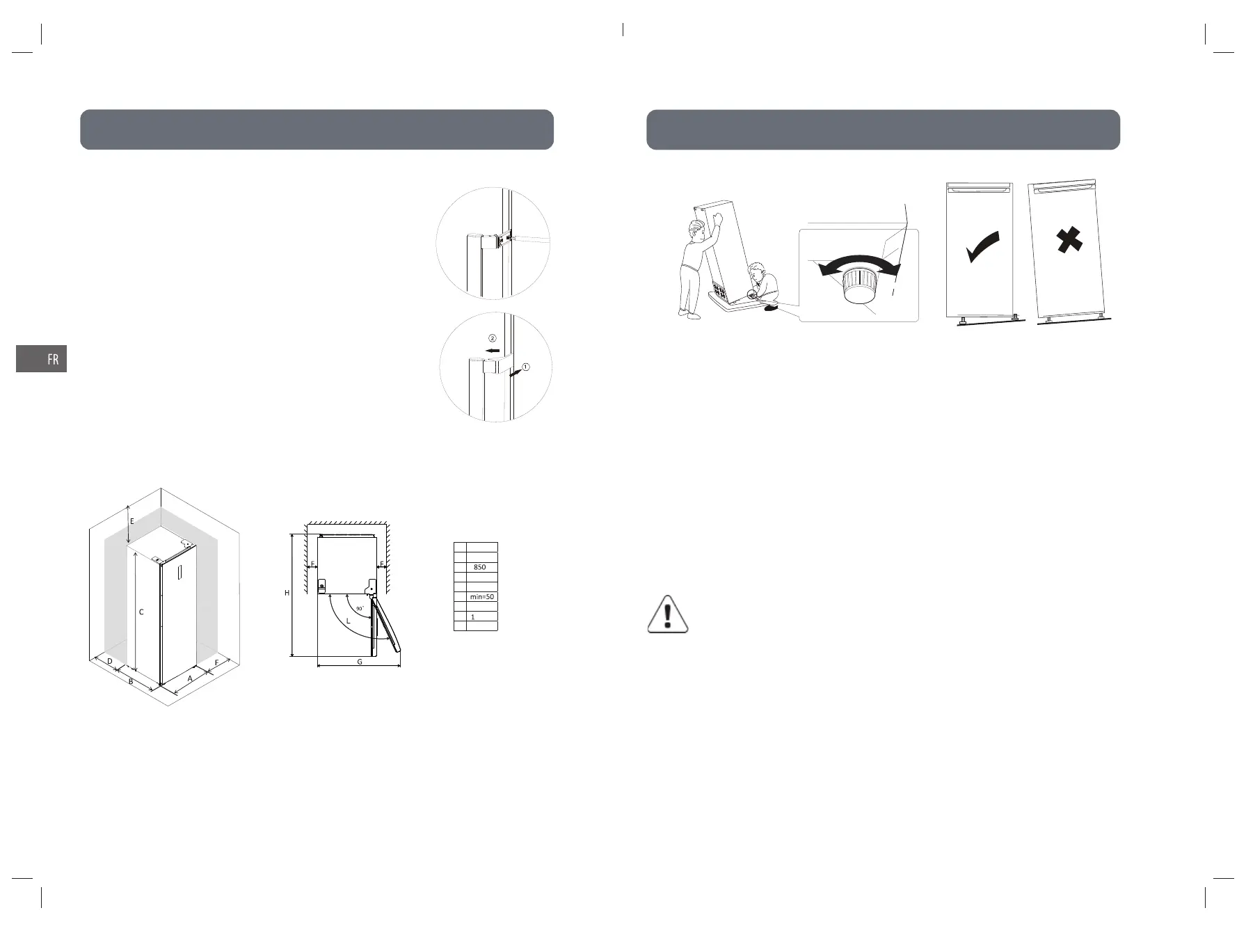 l'unité. Si l'unité n'est pas de niveau, les portes et l'alignement