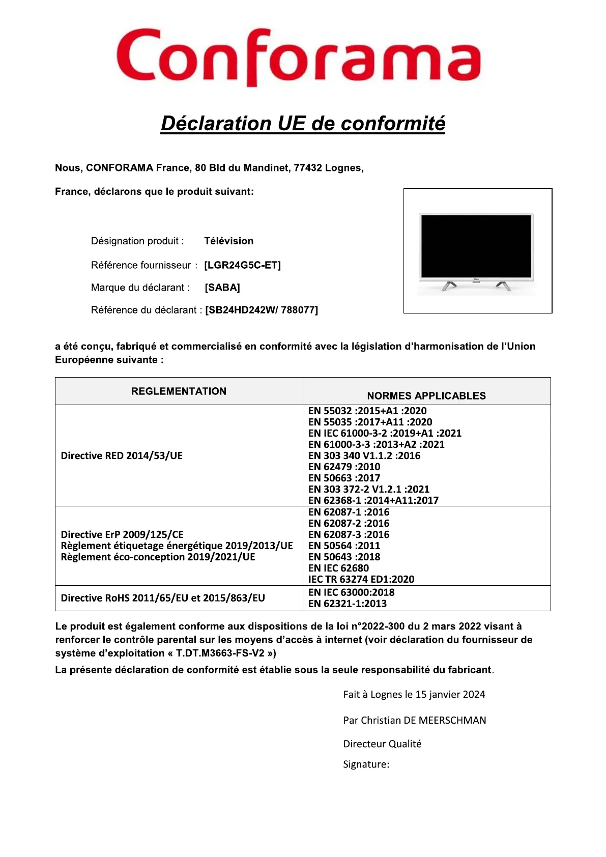 Bekijk gratis de handleiding van Saba SB24HD242W, stel vragen en lees de antwoorden op veelvoorkomende problemen, of gebruik onze assistent om sneller informatie in de handleiding te vinden of uitleg te krijgen over specifieke functies.