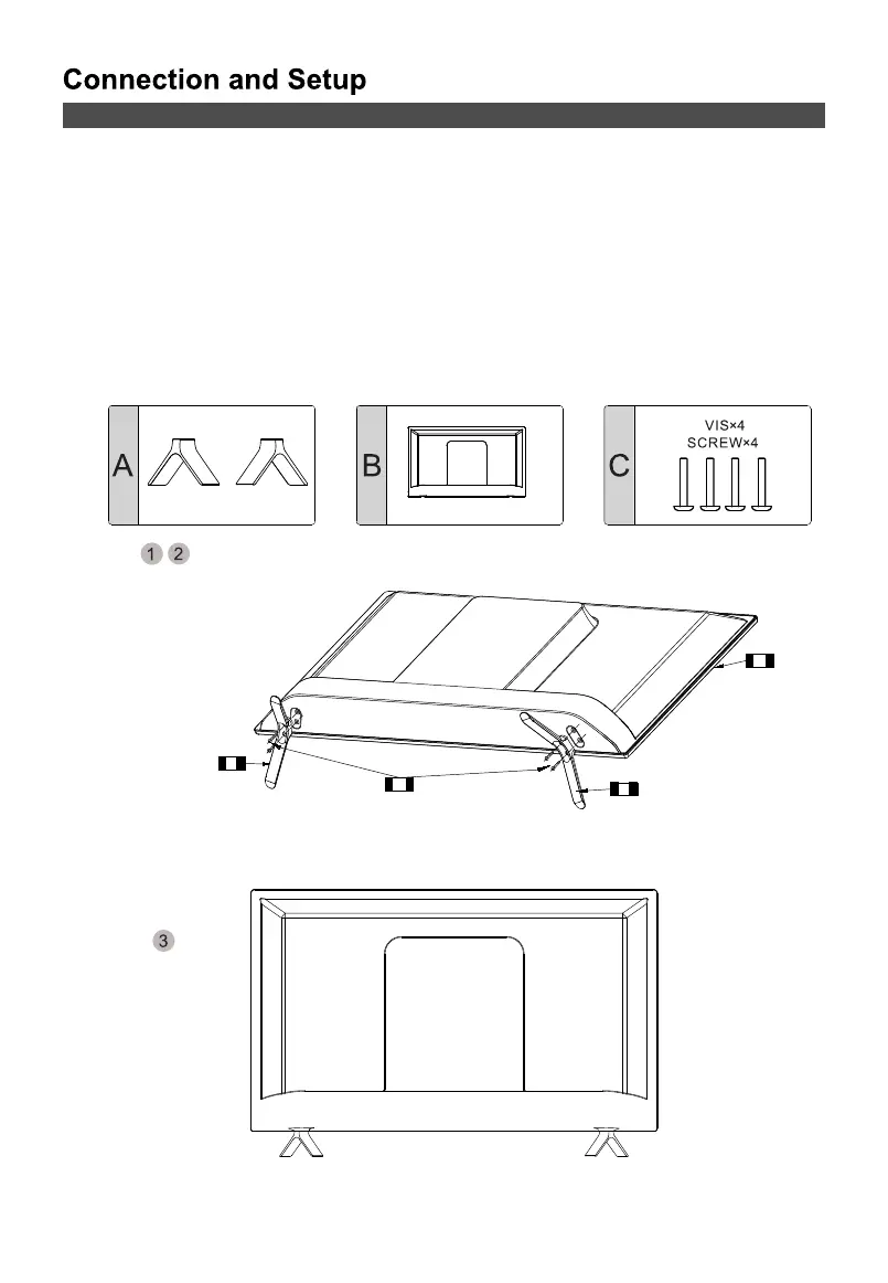 3. Important: insufficient tightening or incorrect installation of the stand will not support your TV