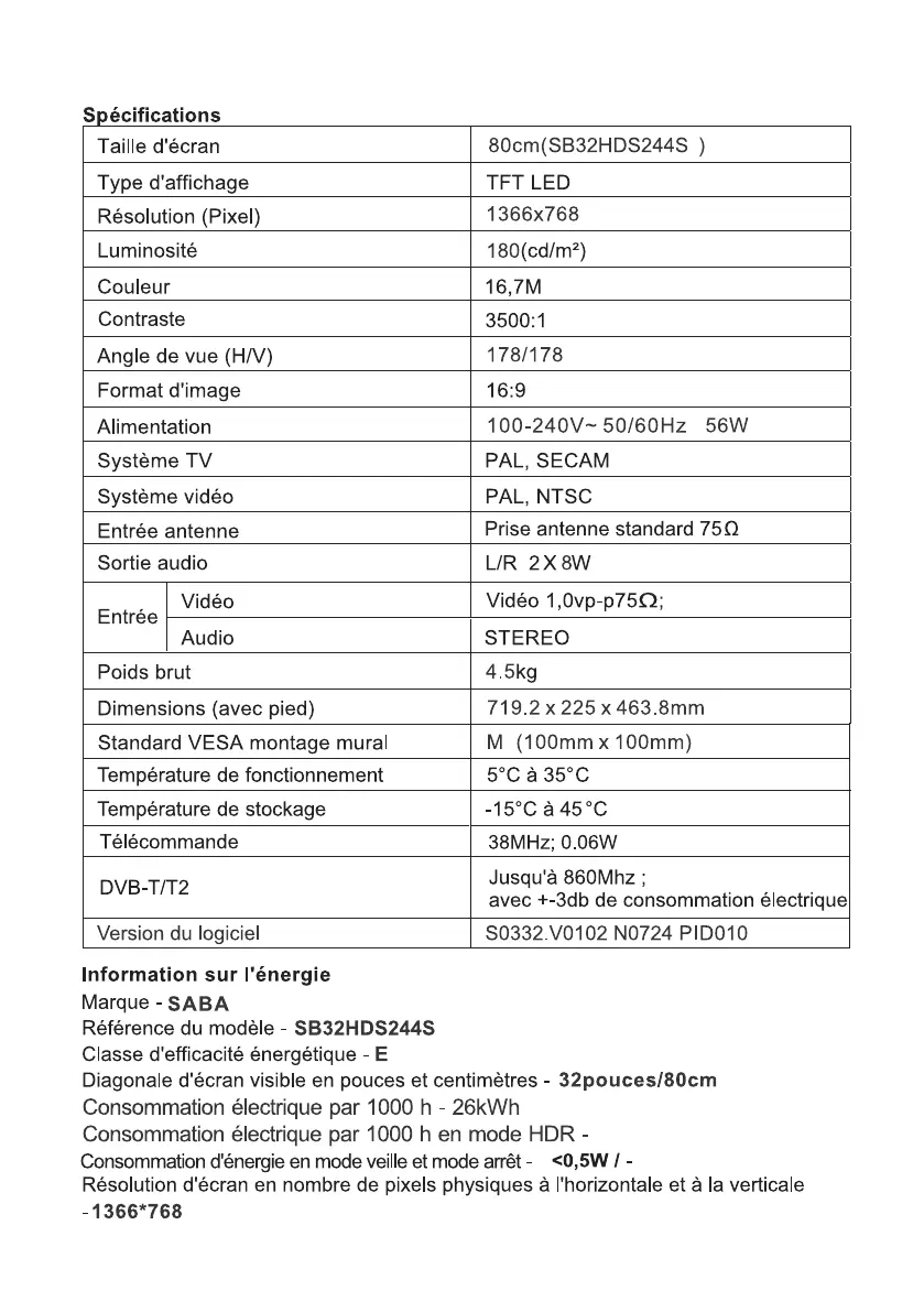 Bekijk gratis de handleiding van Saba SB32HDS244S, stel vragen en lees de antwoorden op veelvoorkomende problemen, of gebruik onze assistent om sneller informatie in de handleiding te vinden of uitleg te krijgen over specifieke functies.