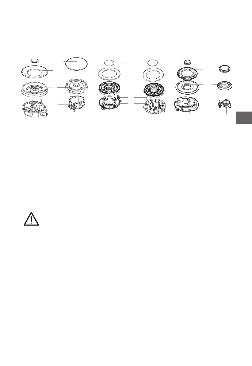 1. Placez la couronne (4) sur la coupelle de brûleur (5) en sorte