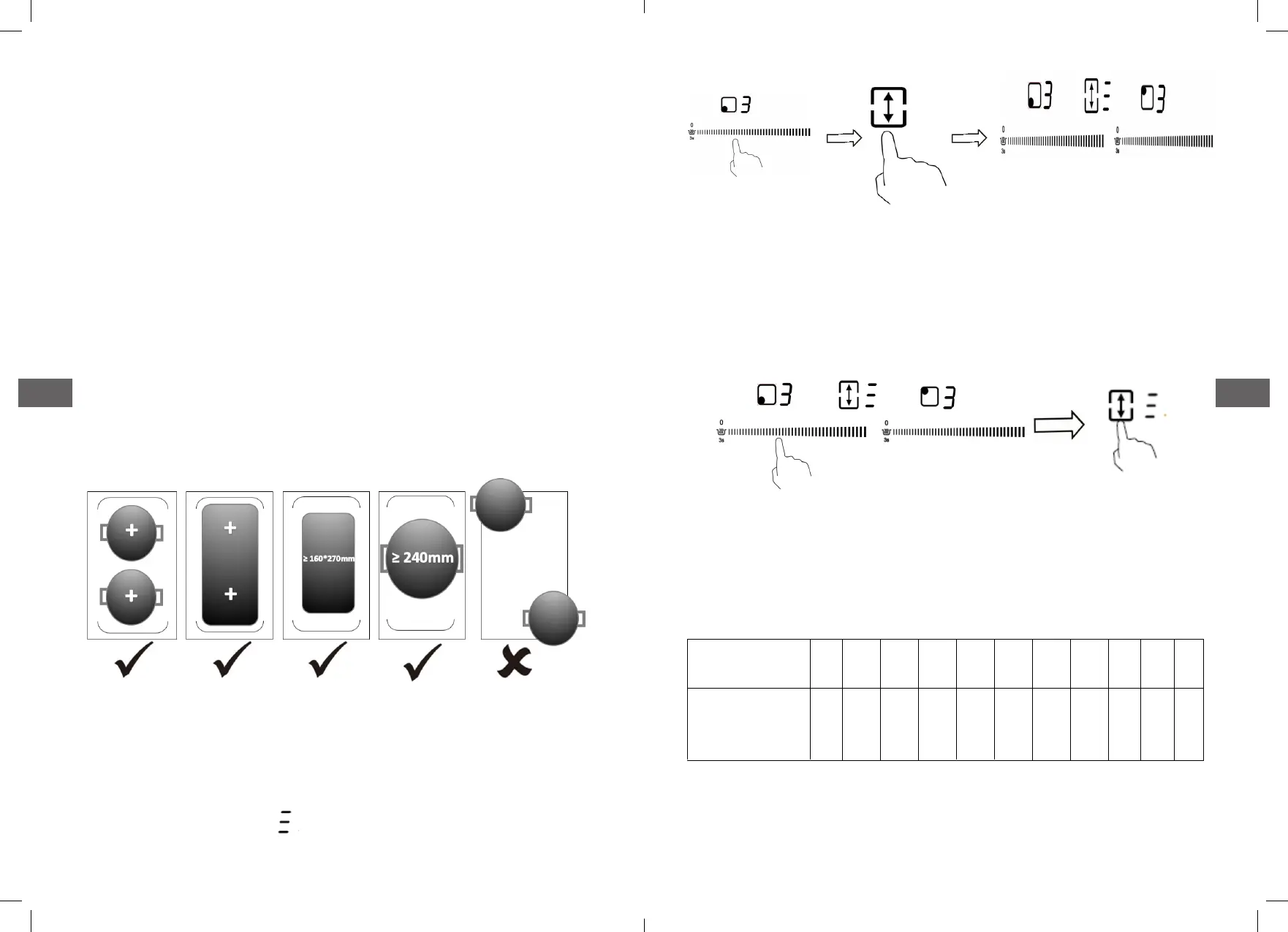 centrés sur la zone de cuisson unique. Dans le cas de grandes