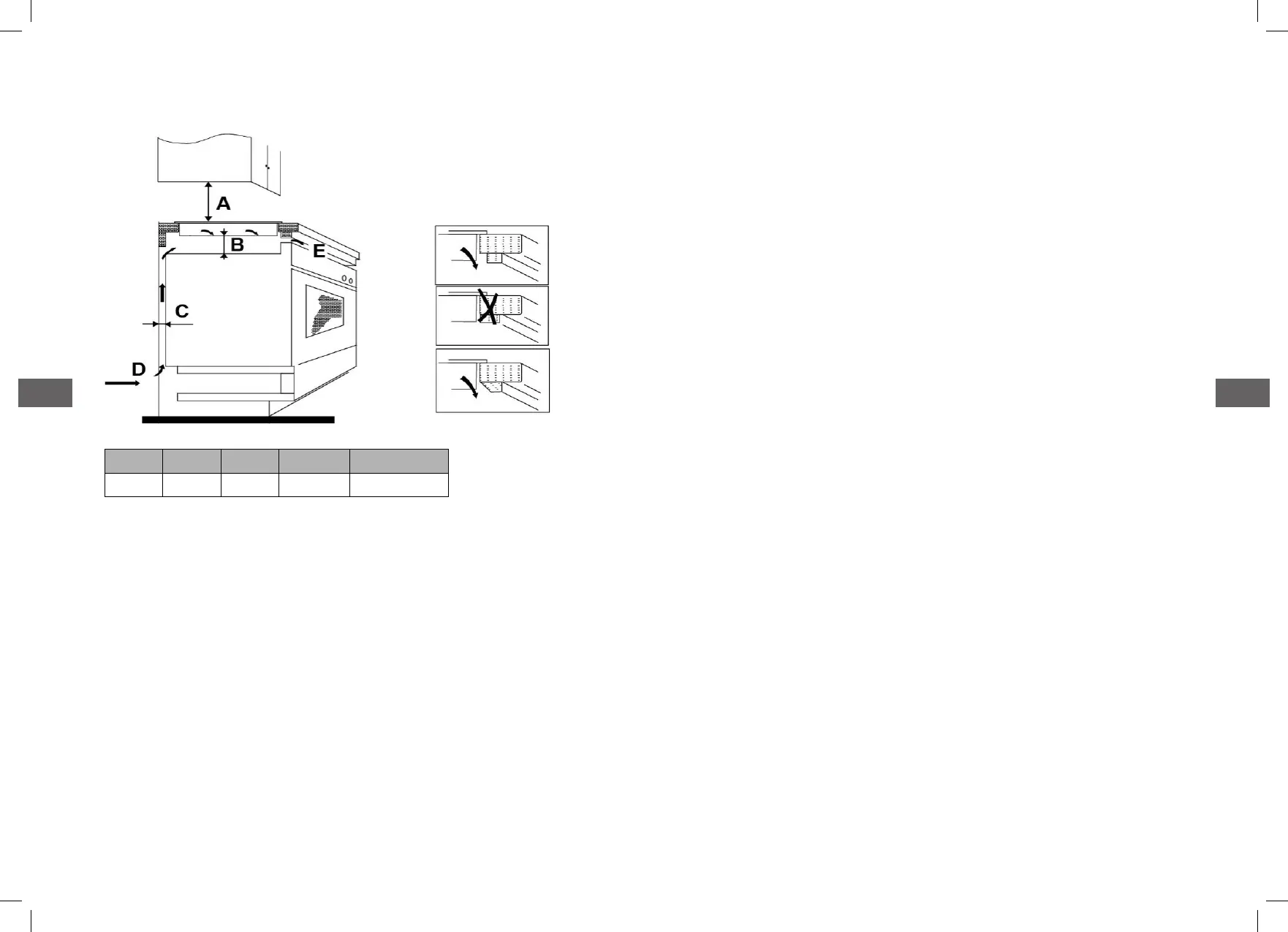 • If the hob is installed above a drawer or cupboard space,a