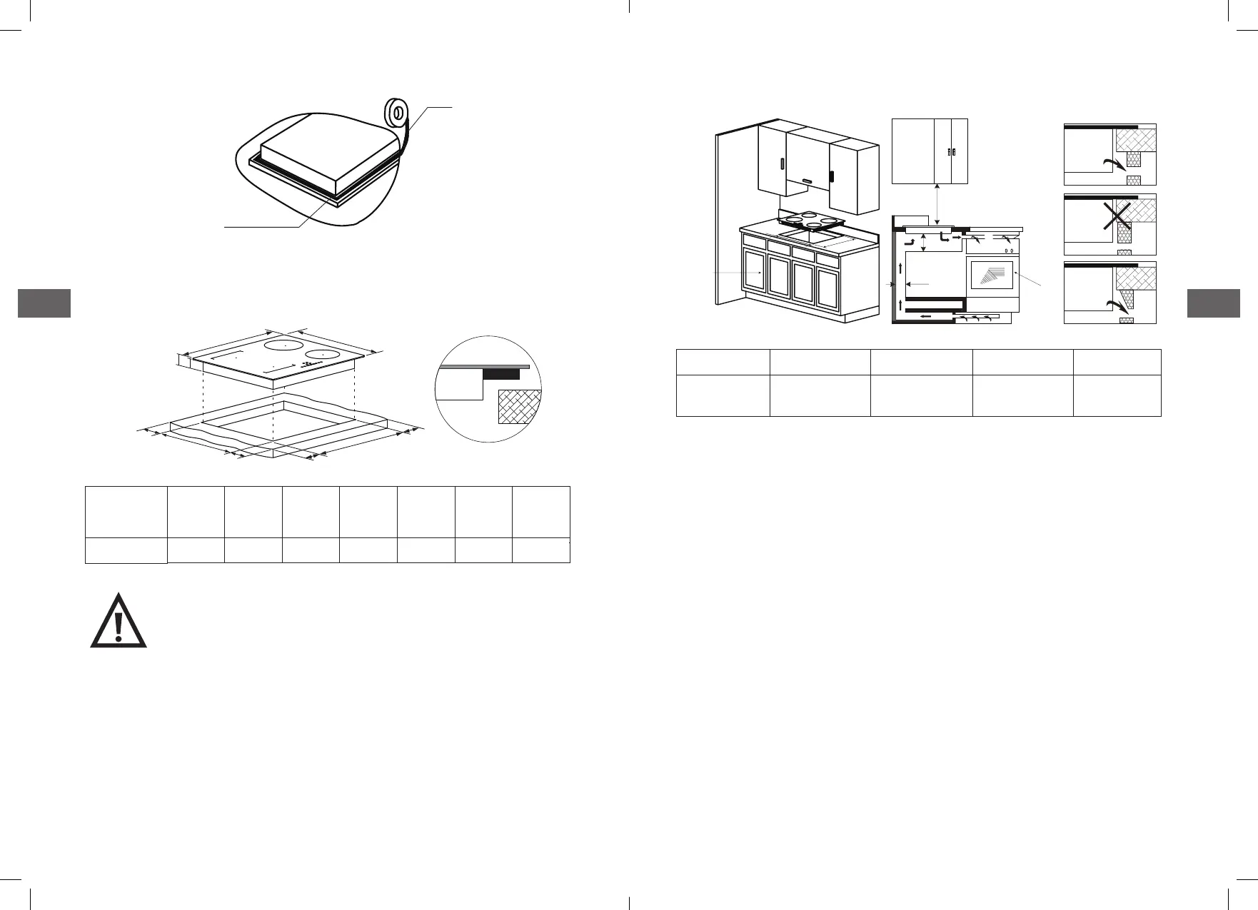 Remarque: La distance de sécurité entre la table de cuisson et le