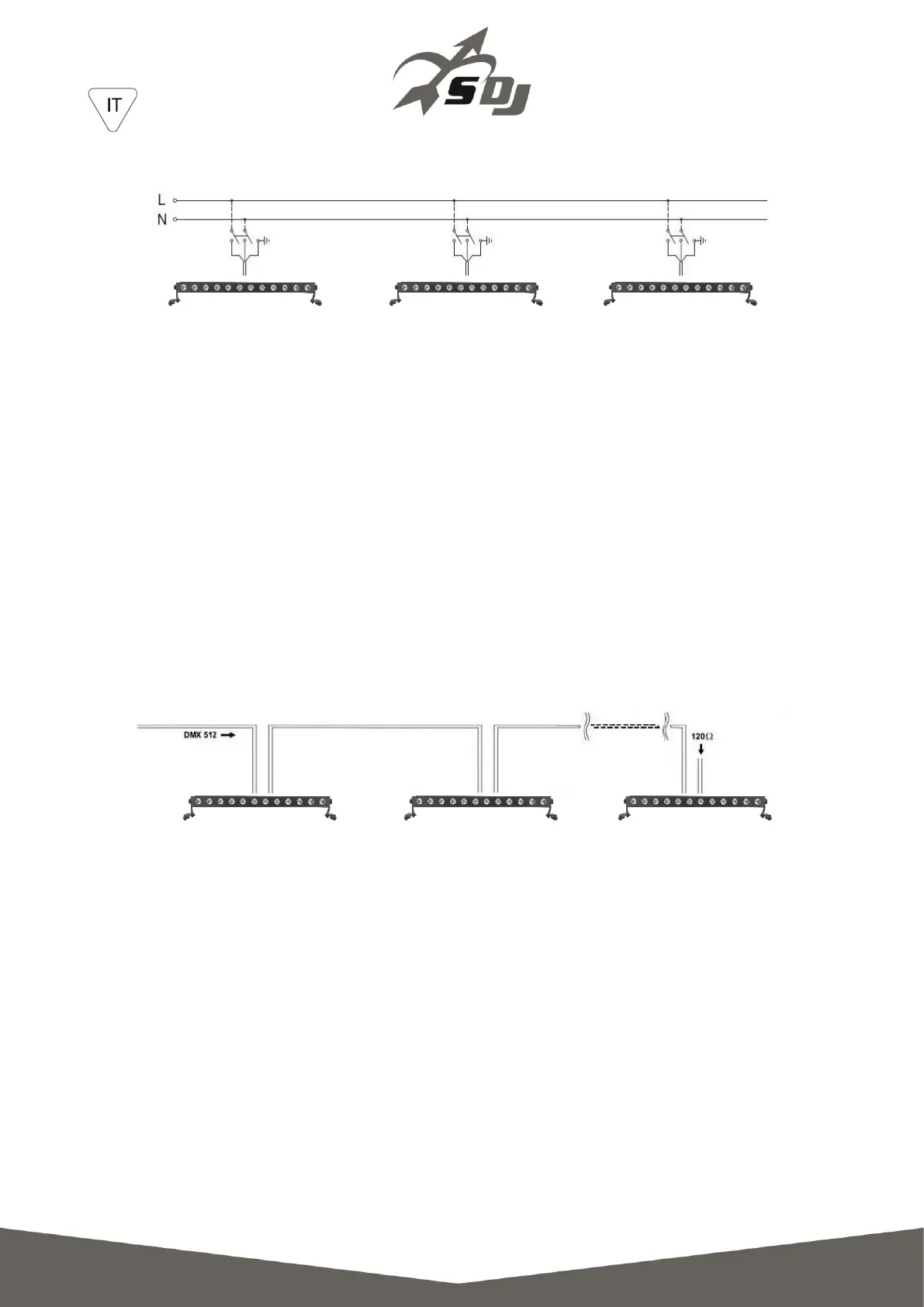 caso di catene DMX superiori a 10 pezzi, si consiglia l’utilizzo di uno splitter DMX (SG