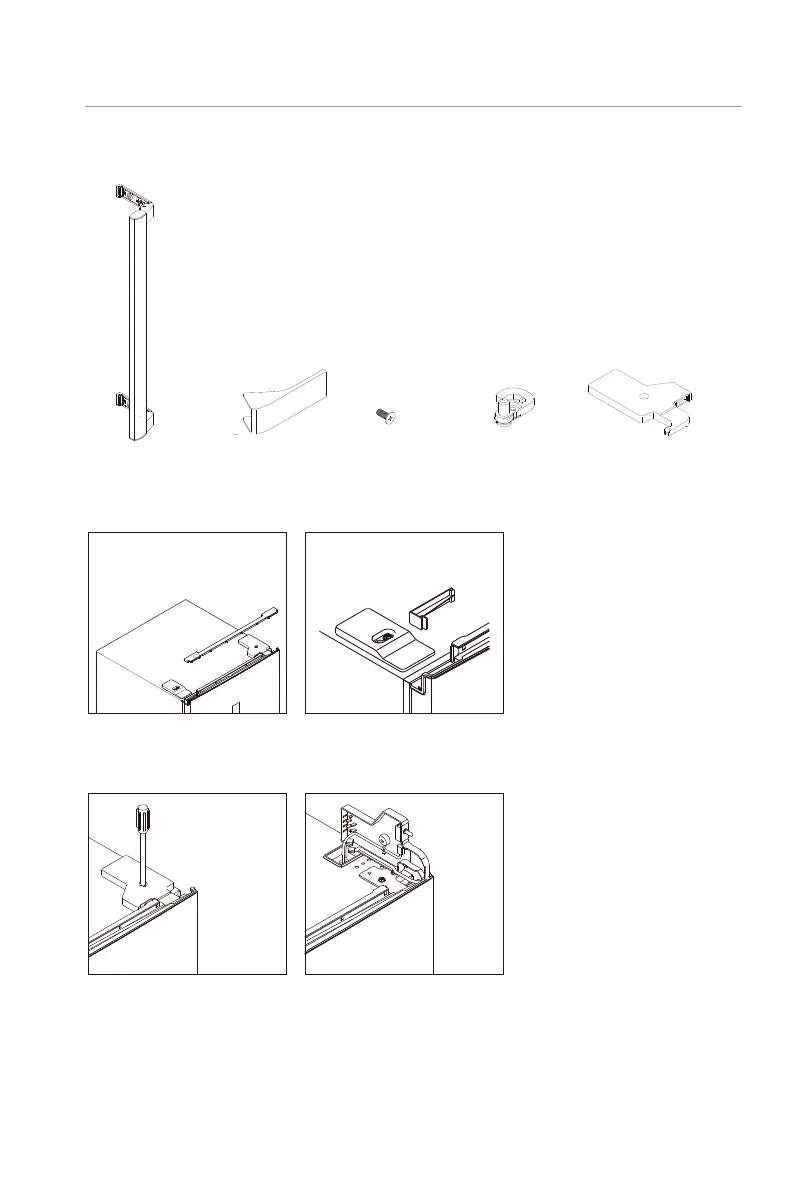 Easy open handle ×1 Handle Cover ×2 Screw ×2 Left Aid-Closer ×1 Left Top Hinge Cover ×1