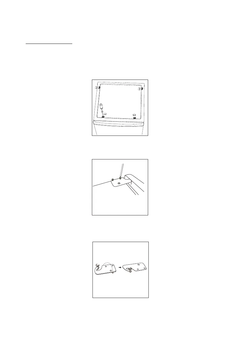 2. Desatornillar la bisag ra superior Retire la puerta superior y colóquelo sobre un cojín suave para