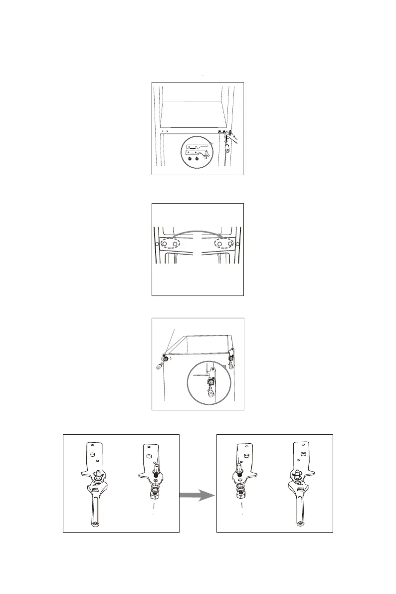 6. Desatornillar la bisag ra inferior. Luego retire las pata s de ambo s lados.