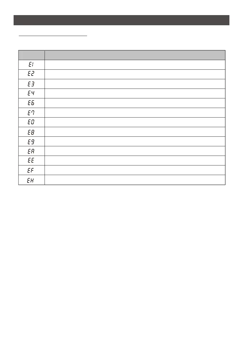 ase of error, the display on the indoor unit shown the following error codes: