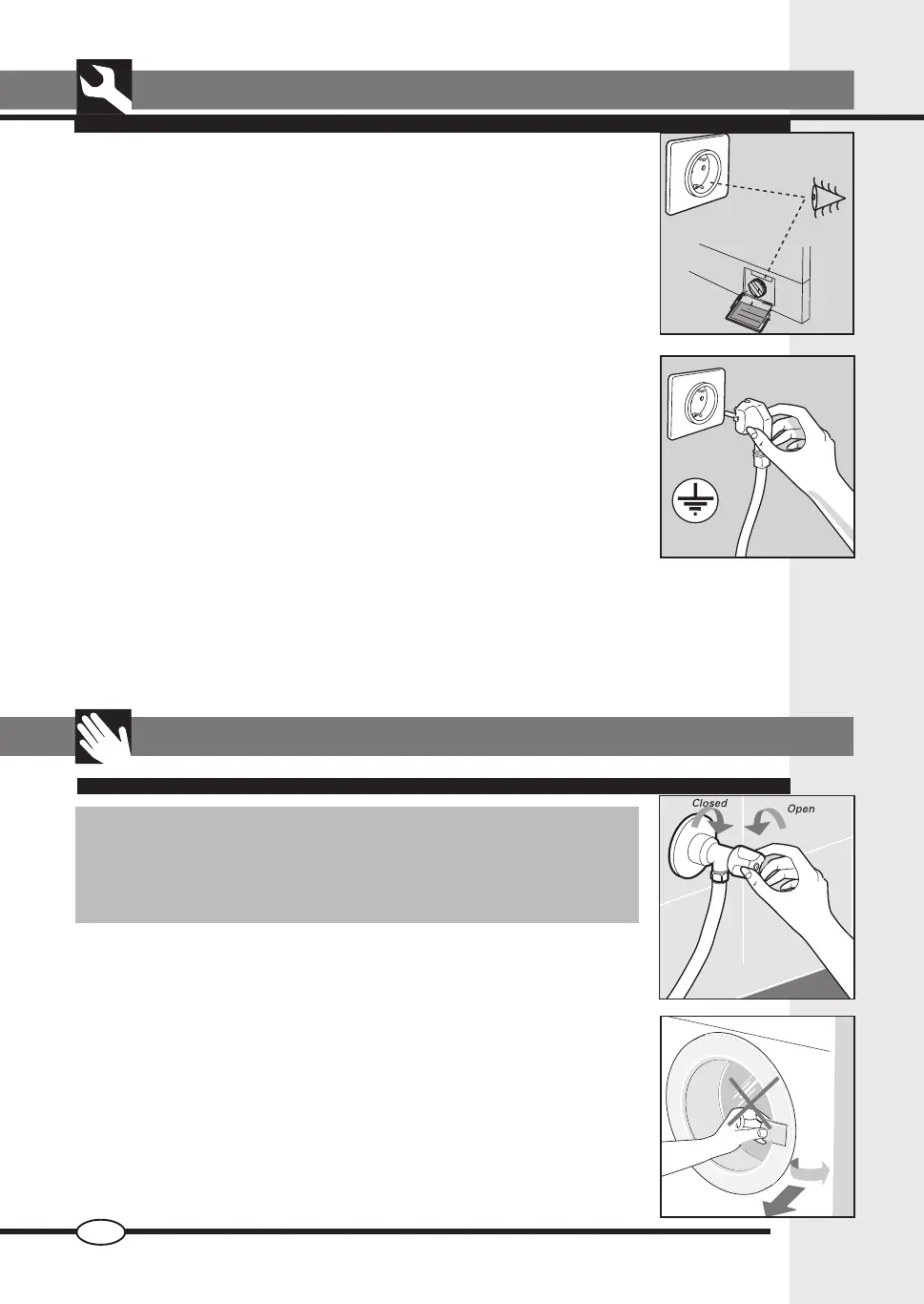 ▼ The washing machine must not be connected to the electricity supply using
