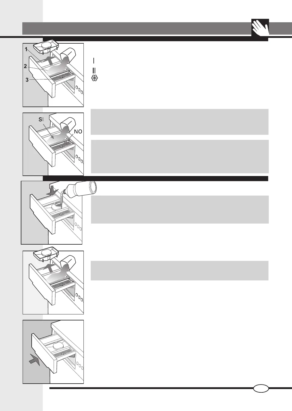 SI EL MODELO PREVÉ EL CONTENEDOR DE DETERGENTE LÍQUIDO